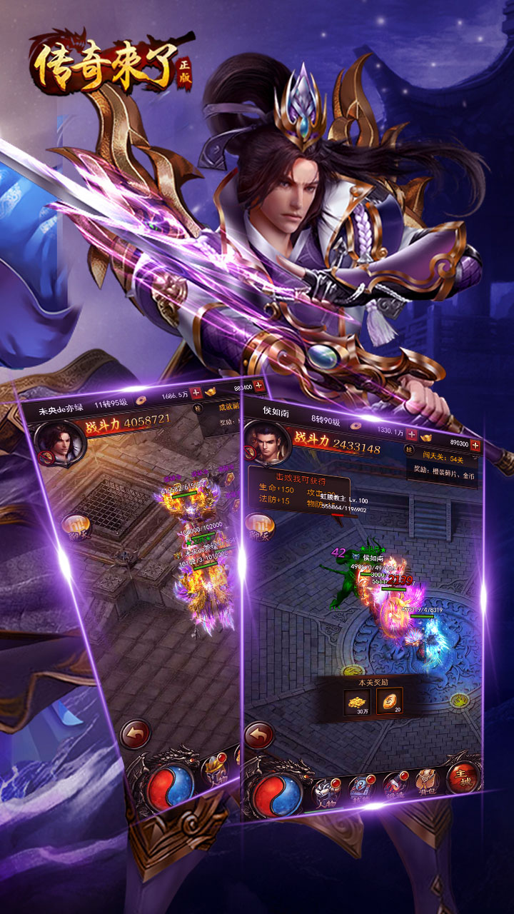 时下最火的正版传奇类H5游戏,一起来战!《传奇来了》是款还原经典传奇大型APRG放置类H5游戏,采用无缝跨屏模式,画面清晰精致打击感实足;游戏中各角色可进行独立的装备、翅膀等养成,炫丽画风显得非常霸气!玩家可与小伙伴一起进行闯关、挑战BOSS等竞技挑战!