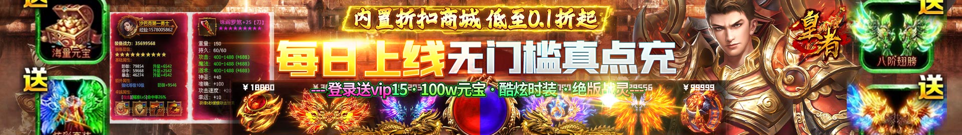 《皇者》是一款角色扮演传奇四职业传奇,全新福利升级补贴商场版本来袭!每日1折商城补贴大甩卖,最低0.1折。各大系统装备道具时装均1折上架,先到先得!上线送满vip15,百万元宝,绝版时装套!每日登陆游戏就能免费点充真充,能拿多少全看手速!全新GM商店大改版!全系列的至尊雷霆免费送!终极魔神海神套装免费兑换!轻松养成超百亿GM扶持号!兄弟快上线,真热血pk传奇邀你来战!