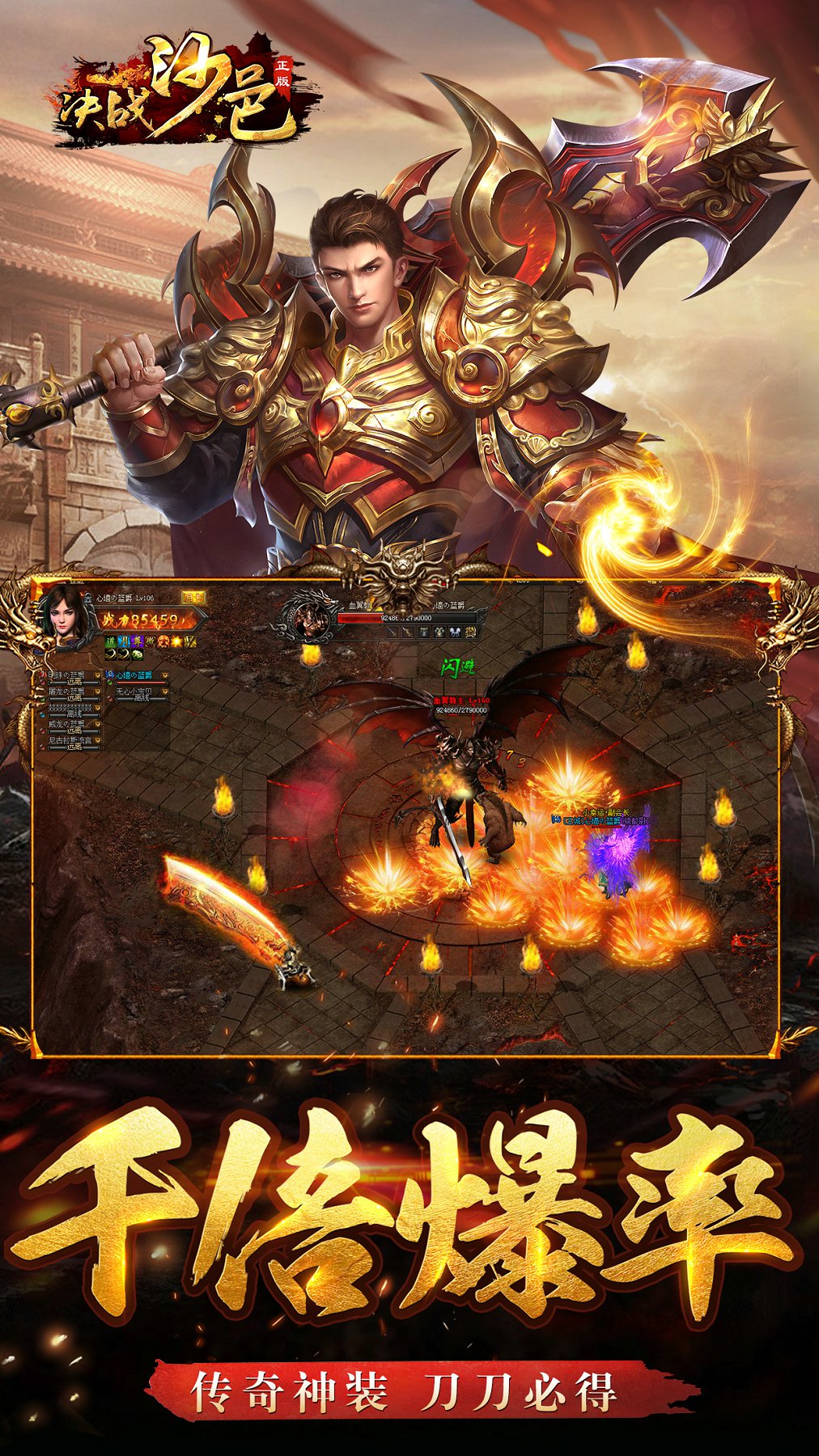 《决战沙邑》是款还原经典传奇大型APRG放置类H5游戏,采用无缝跨屏模式,画面清晰精致打击感实足;游戏中各角色可进行独立的装备、翅膀等养成,炫丽画风显得非常霸气!玩家可与小伙伴一起进行闯关、挑战BOSS等竞技挑战!