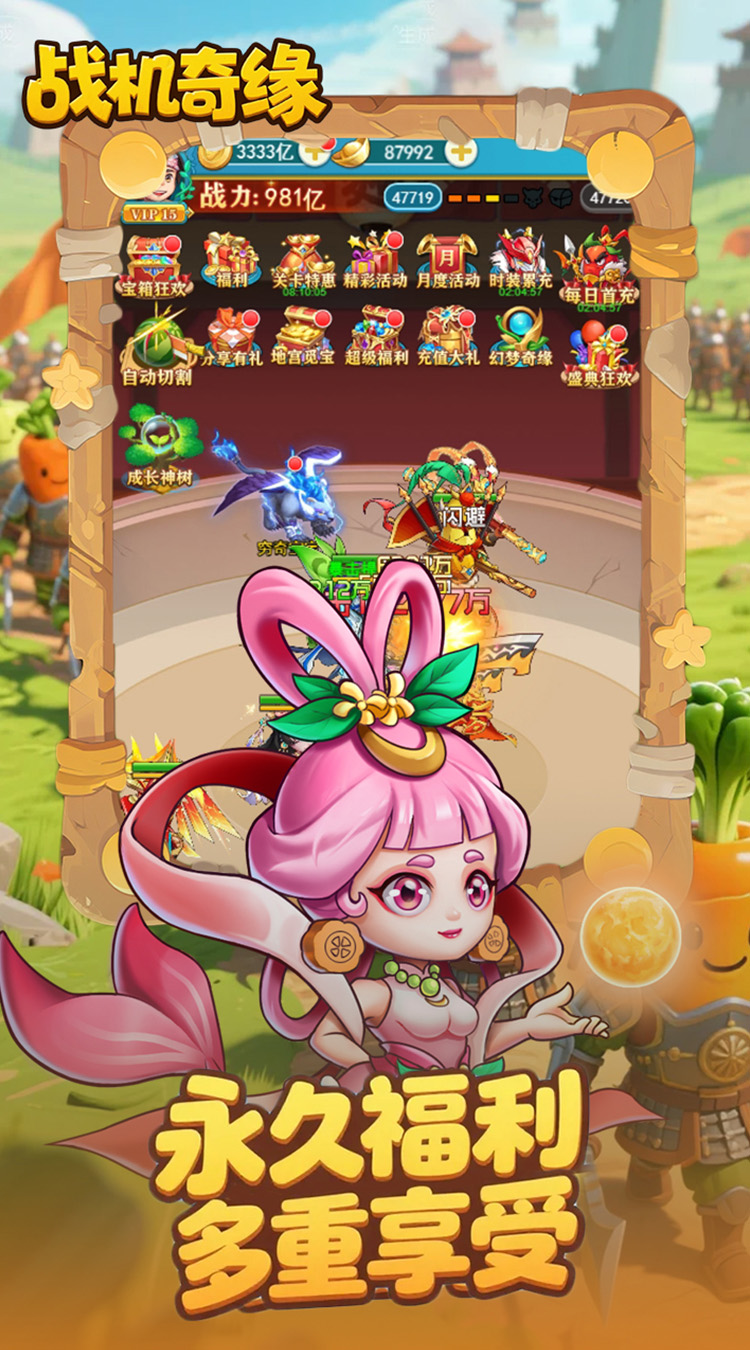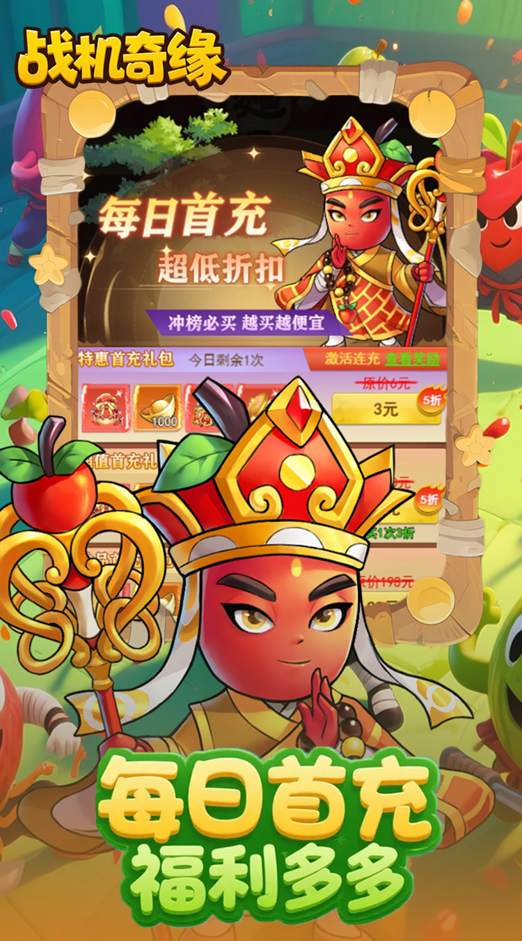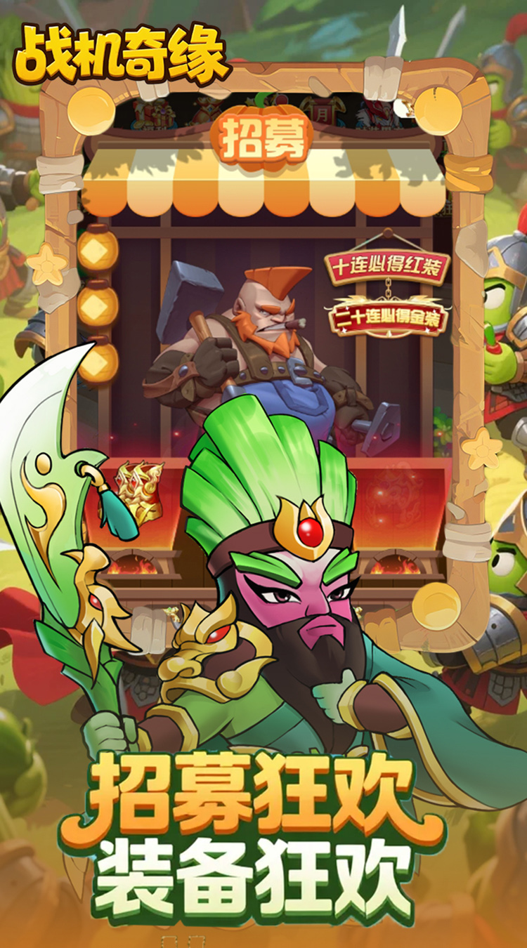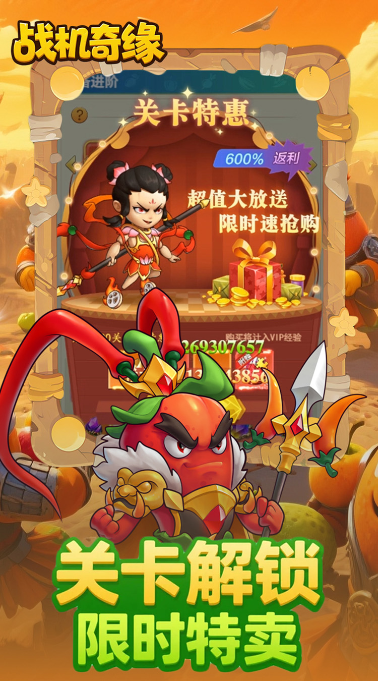《战机奇缘》是一款以三国、神话、群星三大派系为背景的卡牌放置游戏,游戏最大的特点就是所有卡牌英雄都由各种食材化身,例如传说中三国第一猛将吕布就被刻画成火辣的辣椒,而齐天大圣孙悟空则被刻画成香蕉,拥有雄才伟略的诸葛亮是举着扇子的鱿鱼,搭配上游戏轻松搞怪的画风,让你喜欢上这款游戏!