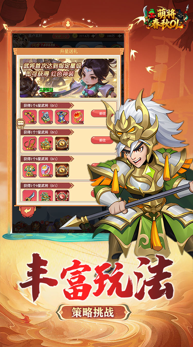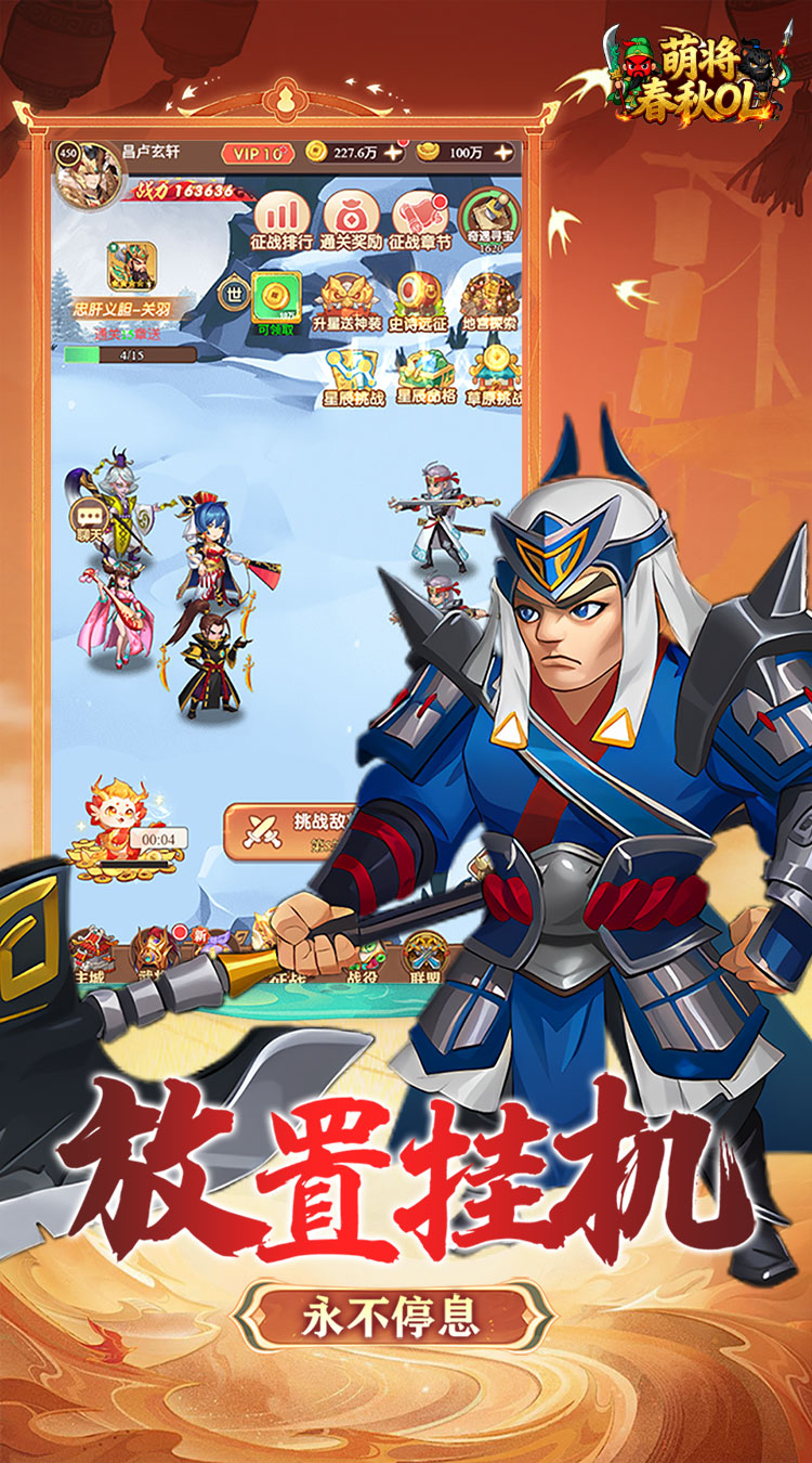 《萌将春秋 OL》是一款 Q 萌画风的三国放置策略手游,主打离线挂机收益机制,解放双手也能轻松累积资源。游戏汇聚海量三国名将,玩家可自由搭配阵容、激活羁绊,在策略布局中征战经典战役。从武将升星、装备淬炼到宠物养成,多维成长体系满足深度培养需求,更有跨服竞技、联盟互动等玩法增添乐趣,零氪玩家也能凭策略逆袭称霸。