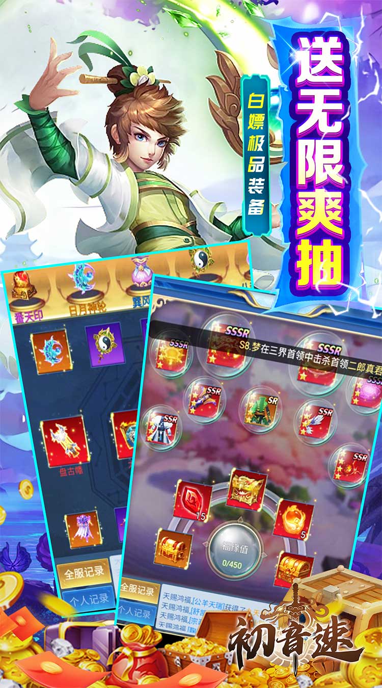 这是一款以九州世界为题材的放置挂机游戏,游戏内所有充值档位通通0.05折,轻轻松松霸服当大佬。全新版本开局就送V10 88888元宝,签到送元宝,激活月卡还能双倍领取,登陆送无限装备抽奖,0元礼包海量送,百倍返利爽翻天!游戏中还有多种玩法,经典的副本玩法,挑战成功道具领到手软!挑战首领,各路仙侠万人同台竞技!加入帮派与至交好友一览仙侠,战斗路上不再孤单!
