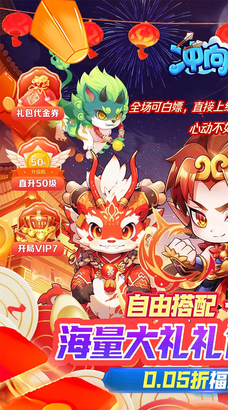 ★开局送VIP7 直升50级 50万金币3万钻石 648充值资源拿到手软